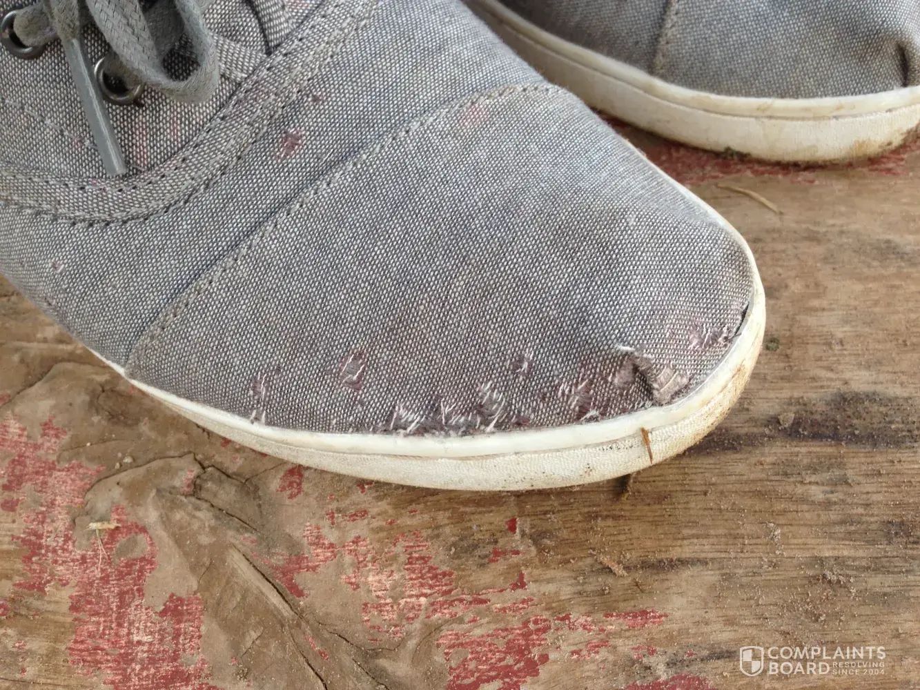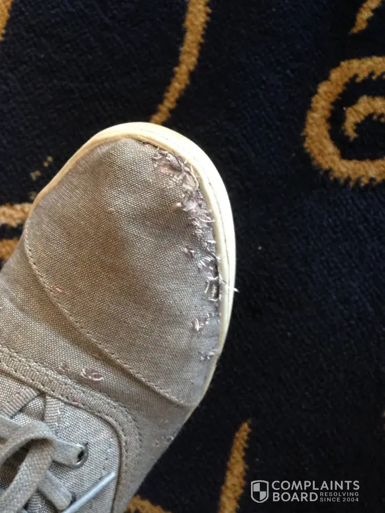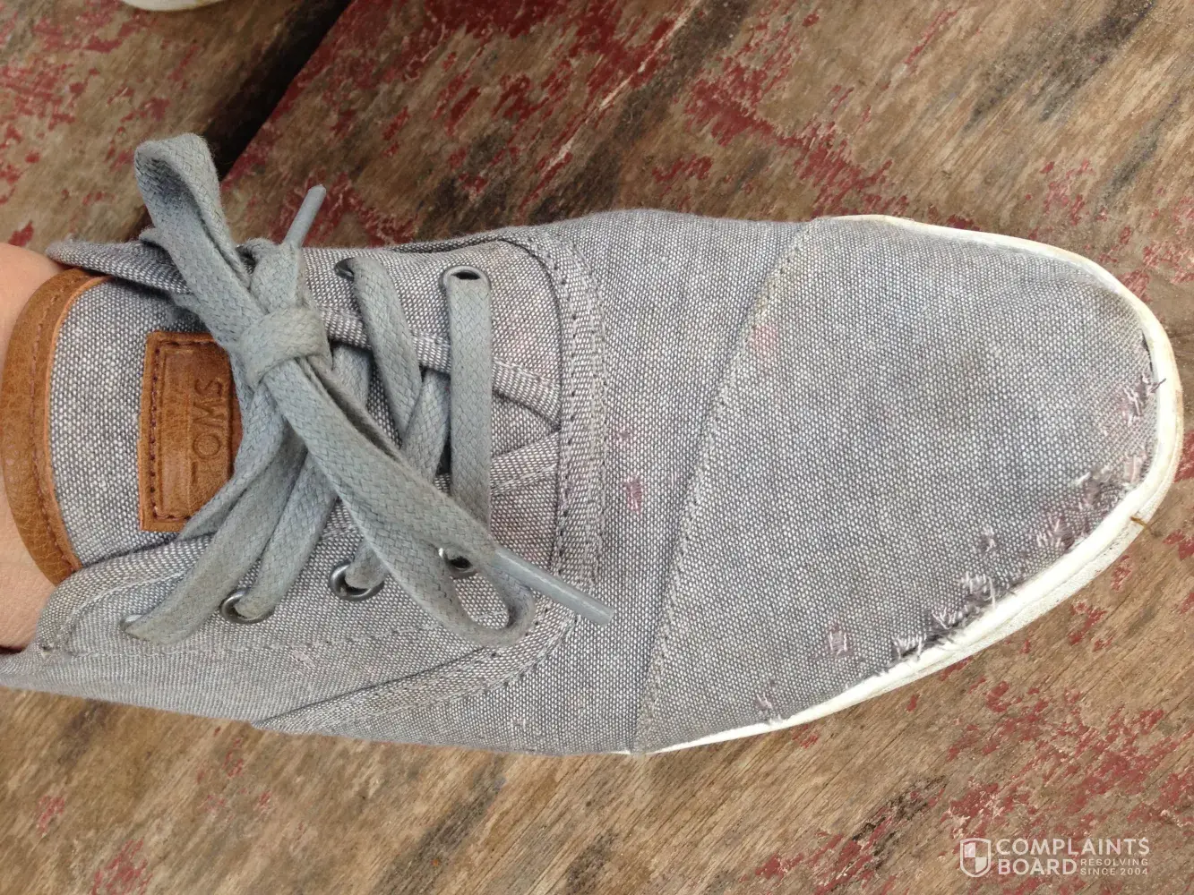 Hello! I would like to submit a complaint about a recent Toms product that I purchased. I purchased a pair of Toms shoes at a Journeys in MA, USA on Sept. 12 2017. I paid in cash, so I do not recall the exact price, but it was about $45-60 (shoes were on sale).