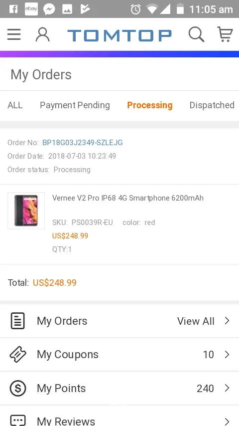 I ordered xiaomi m365 from tomtop website-germany warehouse .I used my visa web prepaid card and it draw funds from my card but on tomtop profile says that payment is being processed but during the process some error ocured and my fear is that nobody will even swnd me the product because i already send mail to company.Both of the company mail and also on messnger on facebook.