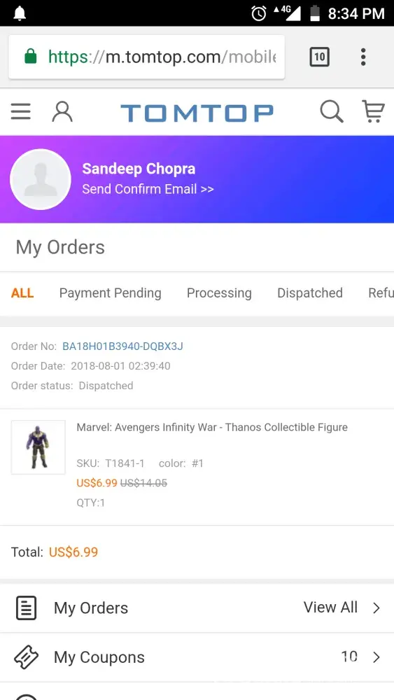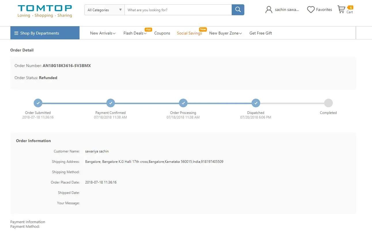 TomTop Group order not yet received. order number an18f08g3058-95n8zp