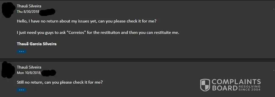 Since then, i've bem contacted the delivery service from my country to know when it would be sent to me, and I did not receive this UNTIL TODAY, 31 OUT 2018. There is almost 1 year!