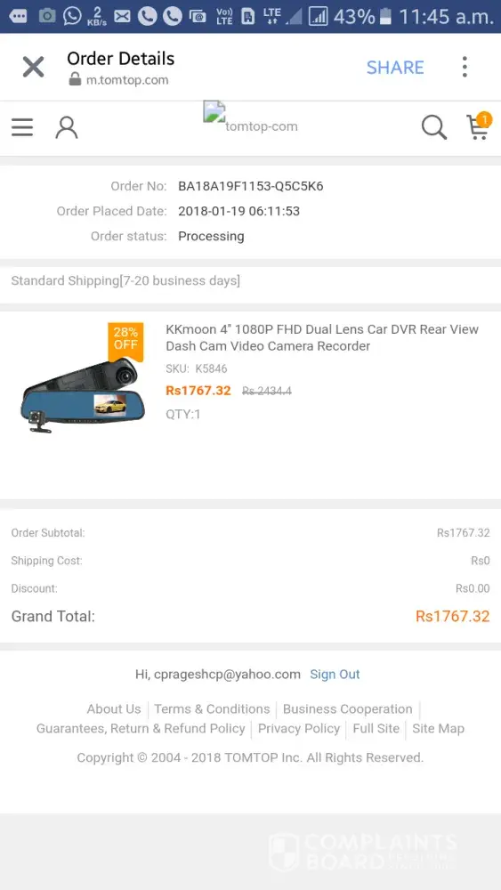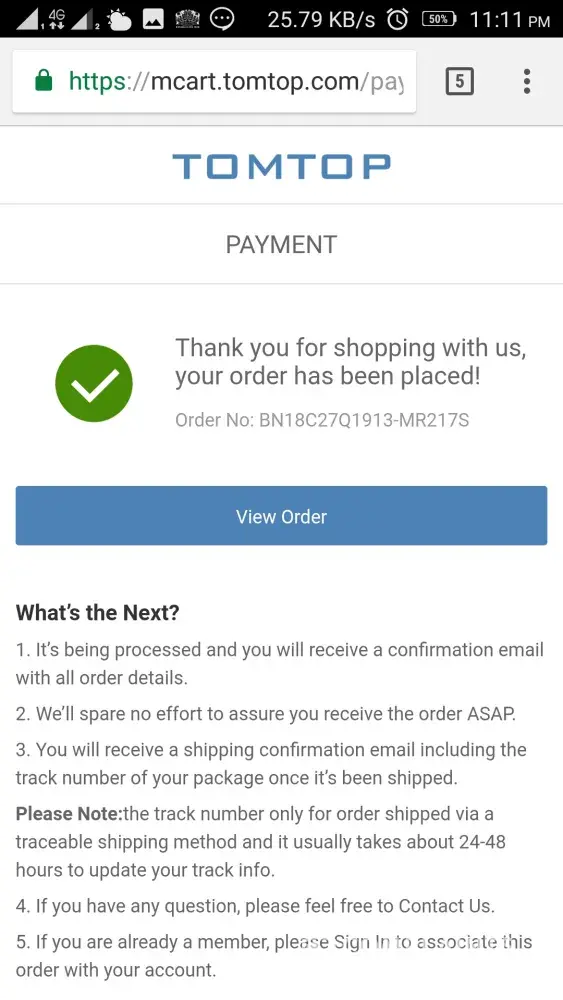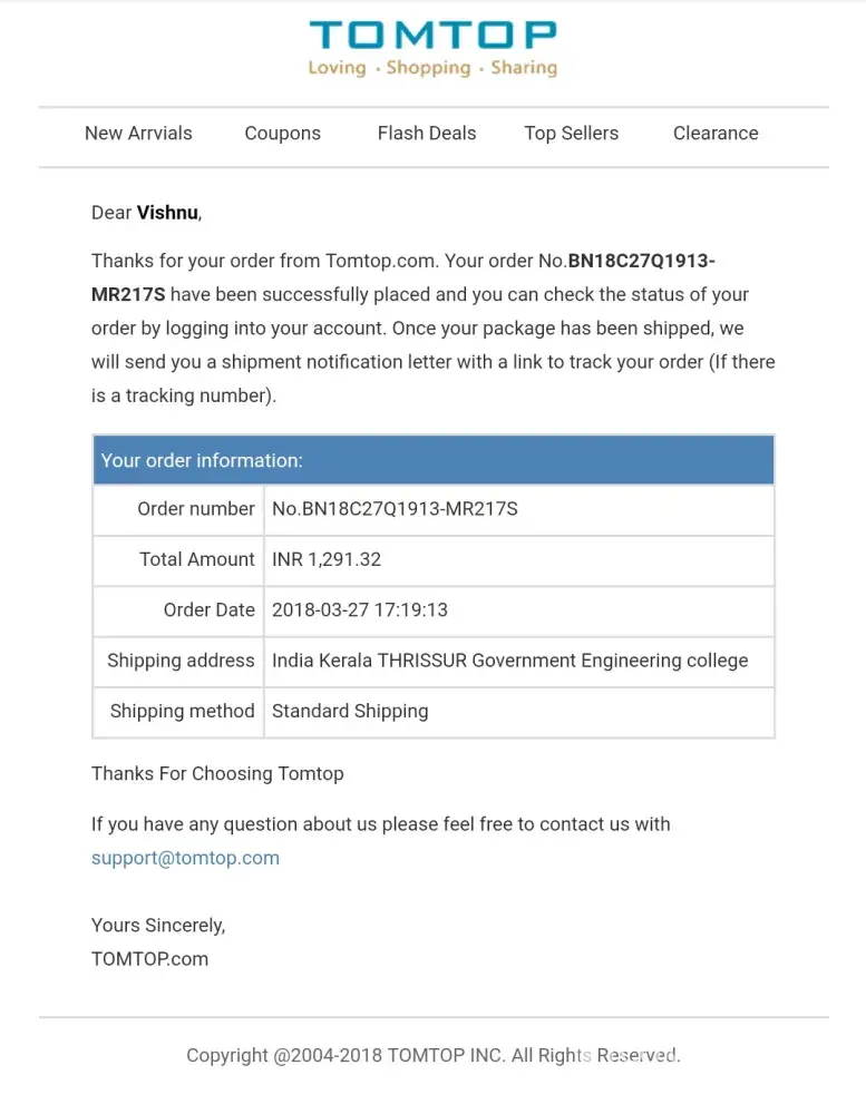 '[protected]@tomtop.com' RE: Dear Adrian, Your Order No.AN18D15E5018-LWPCBN Have Been Successfully Placed! Mon 2:22 PM 26 KB