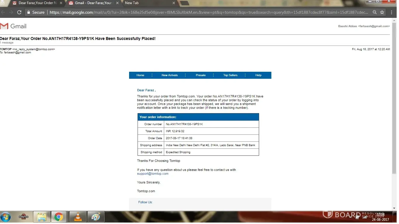 hi, I ordered an quadcopter (order no. RF471269785SG) on aug 1 and was hoping to get it within 10-15 days but to my disappointment I am still waiting for it to arrive. I got that that I asked for the super saver shipping but a shipping this late is, I believe, an embarassment for tomtop. I was looking forward to buy more products but after this I will not and I would recommend everybody, at least the ones in india, not to buy from tomtop.