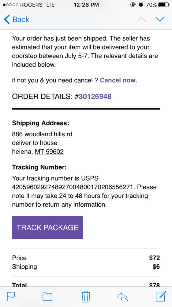 I recieved an email from you saying my order has shipped. I don't have an account with gou, I didn't purchase anything from you and the address you are shipping to is not mine. I will not be paying fir it and if you have my paypal account for it than it is fraud. Here is the order number I was goven in the email, #[protected]. Please take care of this,