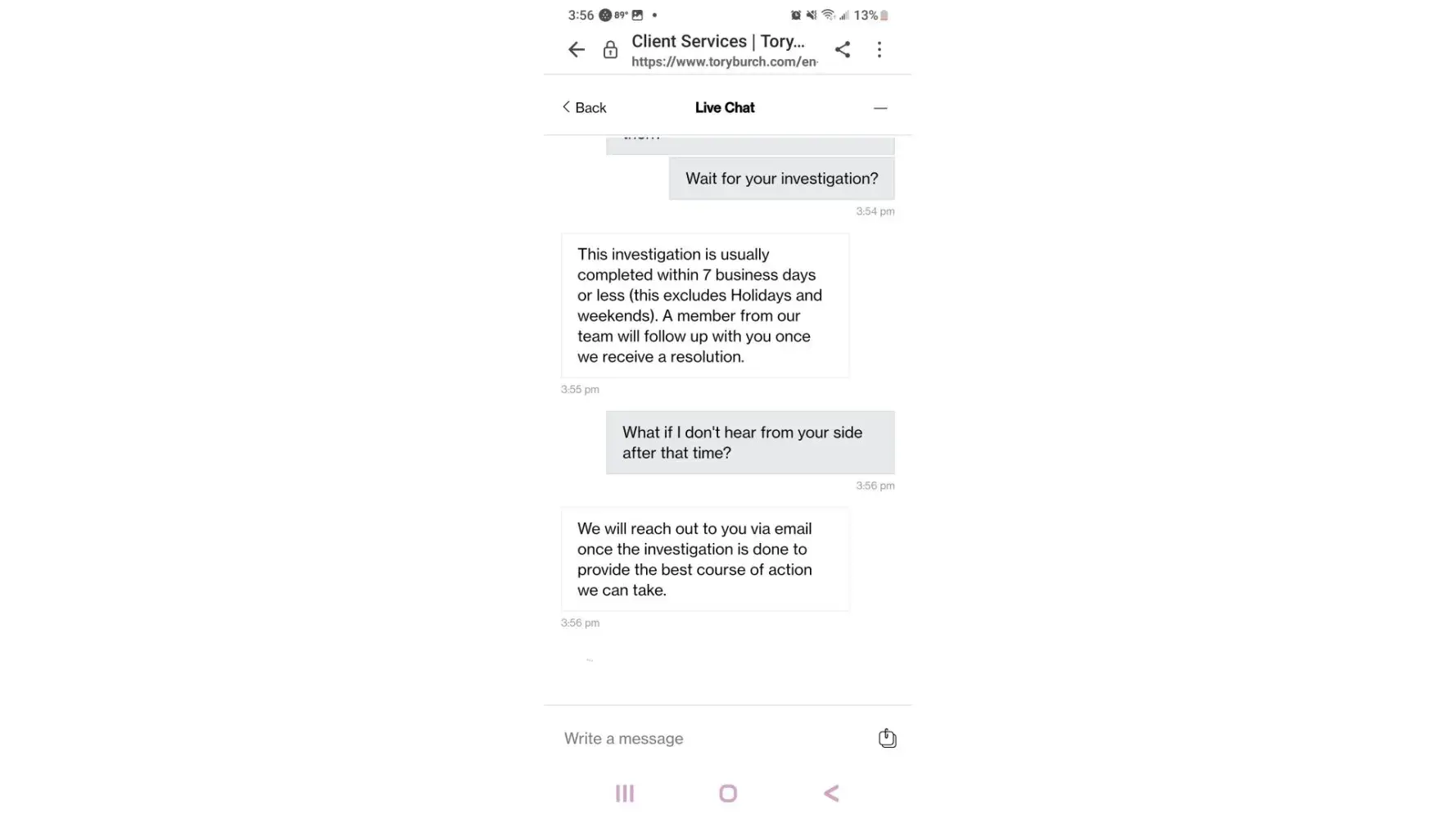 I had placed an Order on Nov. 11, 2022, which was supposed to be delivered on Nov. 14, 2022. But I didn't receive it even after 2 weeks (today). I contacted Tory Burch customer service on Nov. 17th and they opened an investigation claim and asked me to wait a specified number of business days. When the allotted business days were completed, that is Dec. 1st, 2022, I emailed the customer service again but they asked me to wait indefinitely until the investigation is completed. They first told me I had to wait for a certain period, which I patiently waited for, and now they ask me to wait more. The items were supposed to be an anniversary present for my wife.