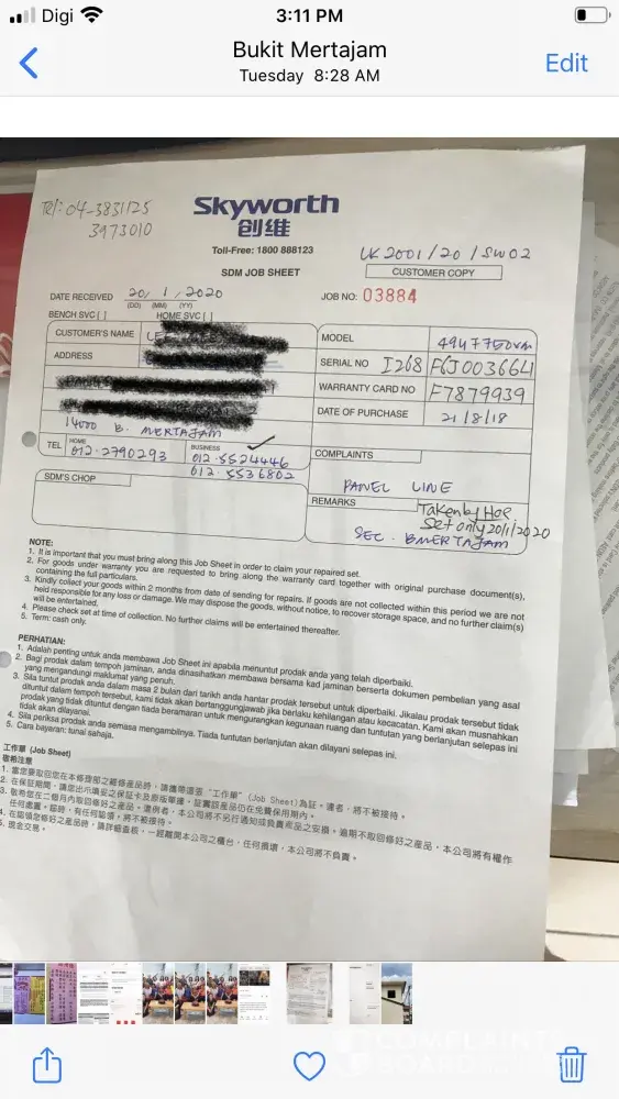 Finally some one pick up the phone from Skyworth Seberang Jaya branch.