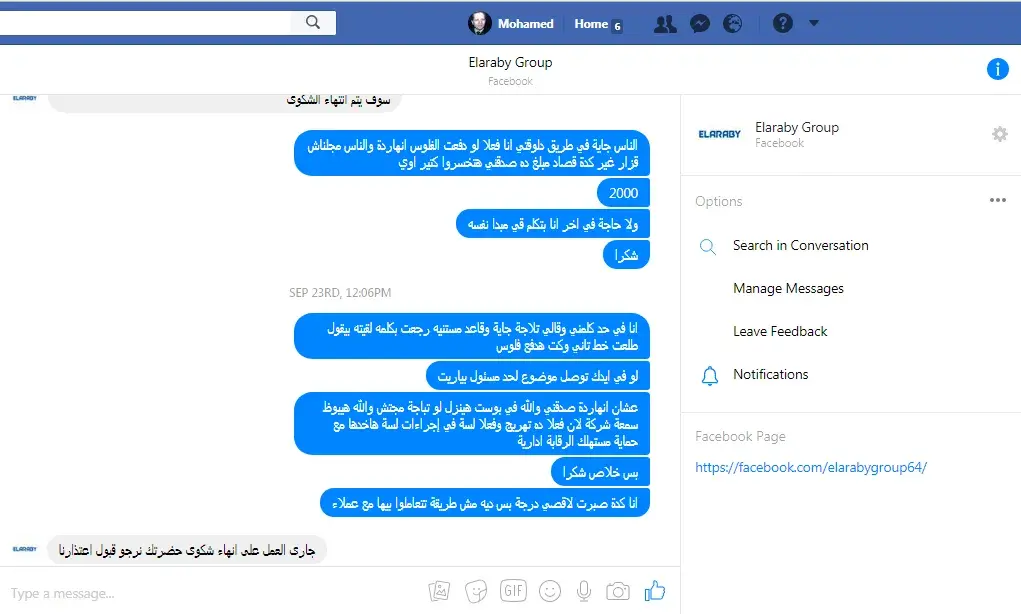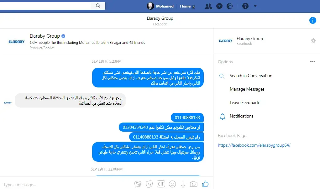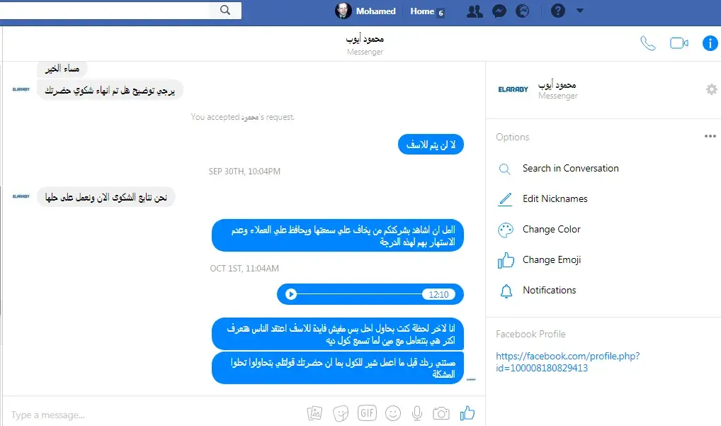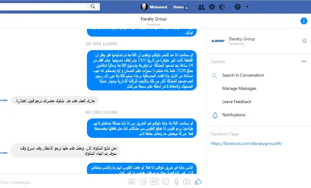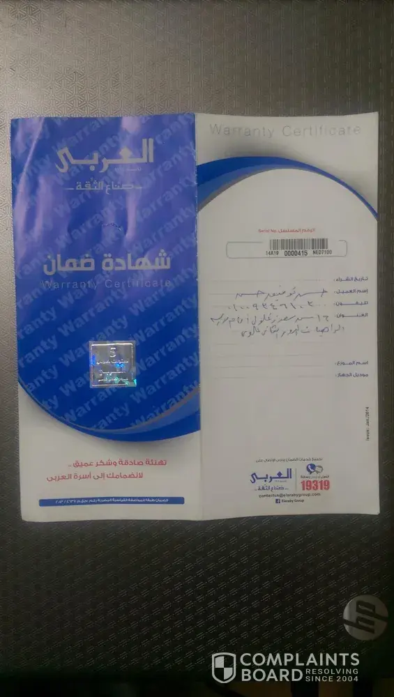 I share my probleme on facebook as below and no one answer me from elaraby :-