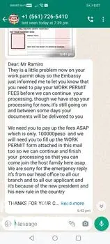 I was applying for a job to your company, and my photos below is one of person assist me to process of papers, job orders, and forms. He asking me for a processing documentation fee of 4000 pesos and with to follow payments to settle for a work job permit. Is there somebody help me for this concern. We only have small source of income that's why i am applying for.