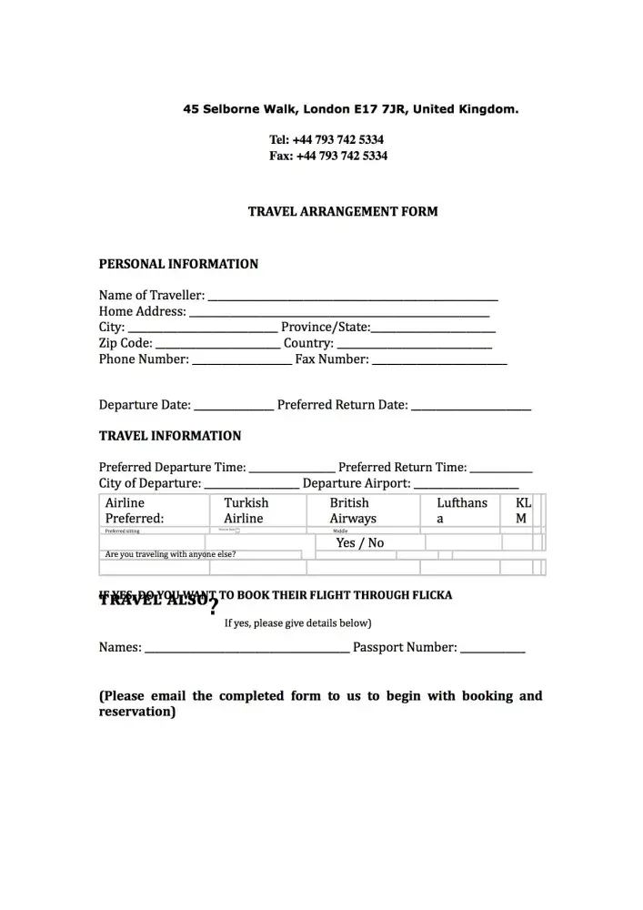 1.A scanned Copy of your Travel Passport.2.A Scanned Copy of a recent passport photograph of you (For Visa Application)3.Filled Travel Arrangement Form4.Fill and return the Visa Application form as attached below (For VisaApplication).5.Invitation Letter from Total Oil and Gas6.A deposit of (£1, 197.87 GBP) this covers for the cost of your flightaccommodation, and your transportation while in London.