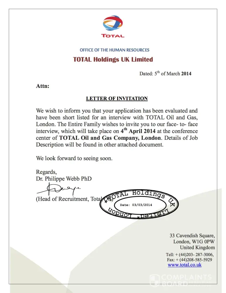 Another scam in the name of Total Oil and Gas Company.
