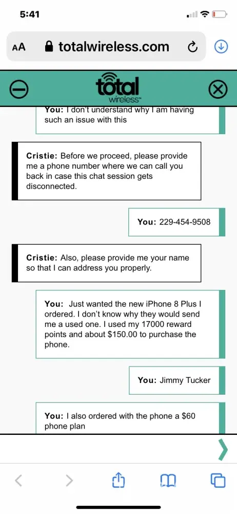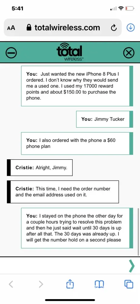 I purchased a new iphone 8 plus from the total wireless online store