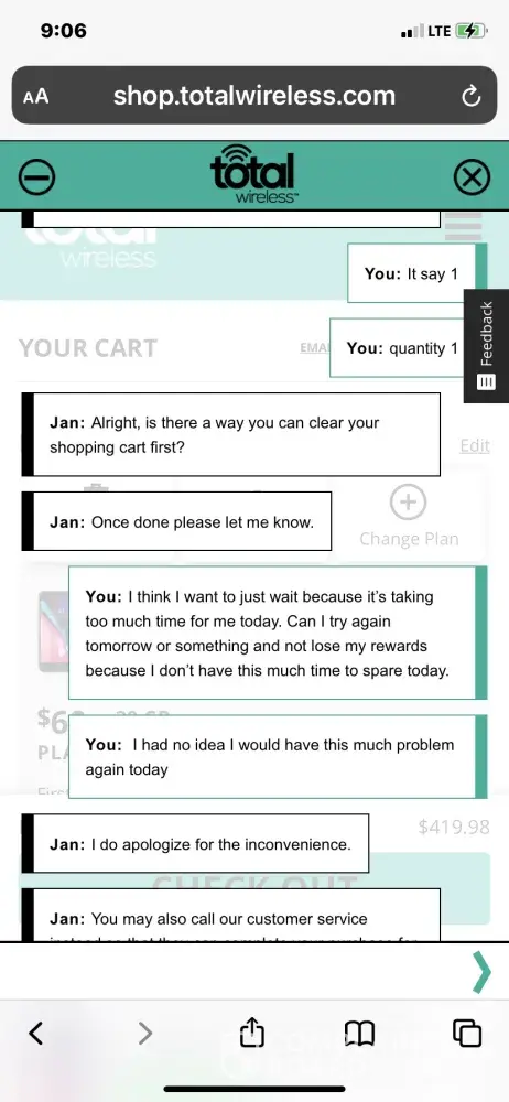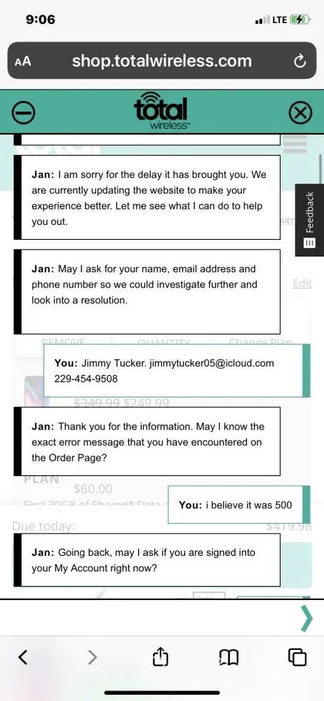 Hi Chet Zelgowski. Please accept our deepest apology for this experience. We do not want our customers to encounter issues about the service we offer. Don't you worry. We will take further steps to remedy this problem as soon as possible. For further assistance, please chat with us via this link https://www.totalbyverizon.com/support/contact-us, or call us at [protected]. For your convenience, our representatives are available Monday-Sunday from 8:00 AM to 11:45 PM EST. You can also use our self-service menu by simply texting the word HELP to 611611.