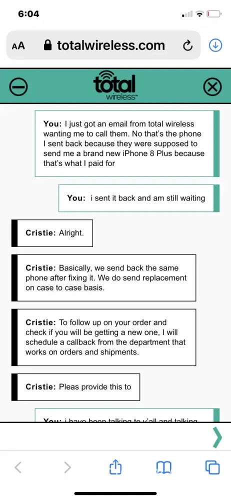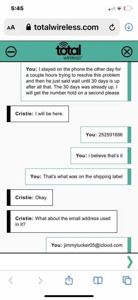Hi Chris Boyles. Our sincere apologies for the inconvenience that this has caused you. Please know that it is never our goal to let you experience such troubles. We really do understand your frustration, and we are doing our best to provide quality service all throughout the years. Give us a chance to fully evaluate your situation and help you out. For further assistance, you can chat with us via this link https://www.totalwireless.com/contactuss, or call us at [protected]. For your convenience, our representatives are available Monday-Sunday from 8:00 AM to 11:45 PM EST. You can also use our self-service menu by simply texting the word HELP to 611611.