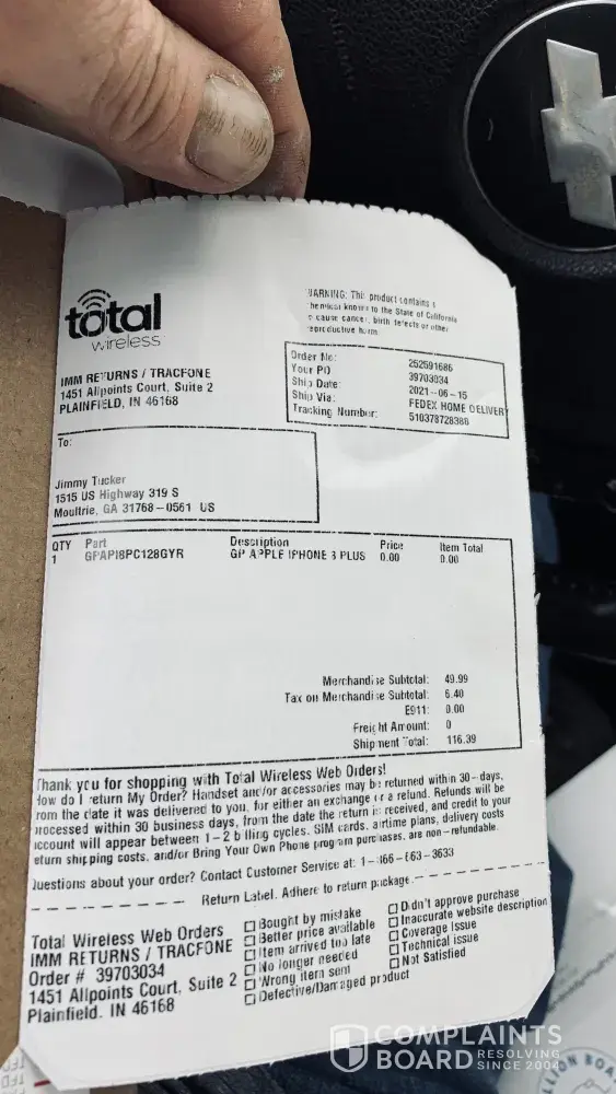 Hi Catherine Bozarth. We really do apologize for the inconvenience that this has caused you. This is not the experience we want our customers to feel. Give us a chance to fully evaluate your situation and help you out. For further assistance you can chat with us via this link Give us a chance to fully evaluate your situation and help you out. For further assistance you can chat with us via this link https://www.totalwireless.com/contactus, or by calling [protected]. For your convenience, our representatives are available Monday-Sunday from 8:00 AM to 11:45 PM EST. You can also use our self-service menu by simply texting the word HELP to 611611.