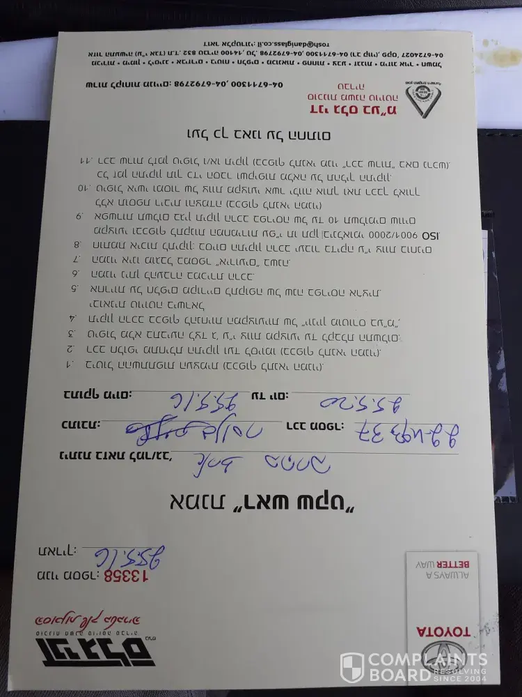 Hello, my name is Erez Baharav and I'm writing to complain about "Dani Glass" dealership located in Tveria, Israel.