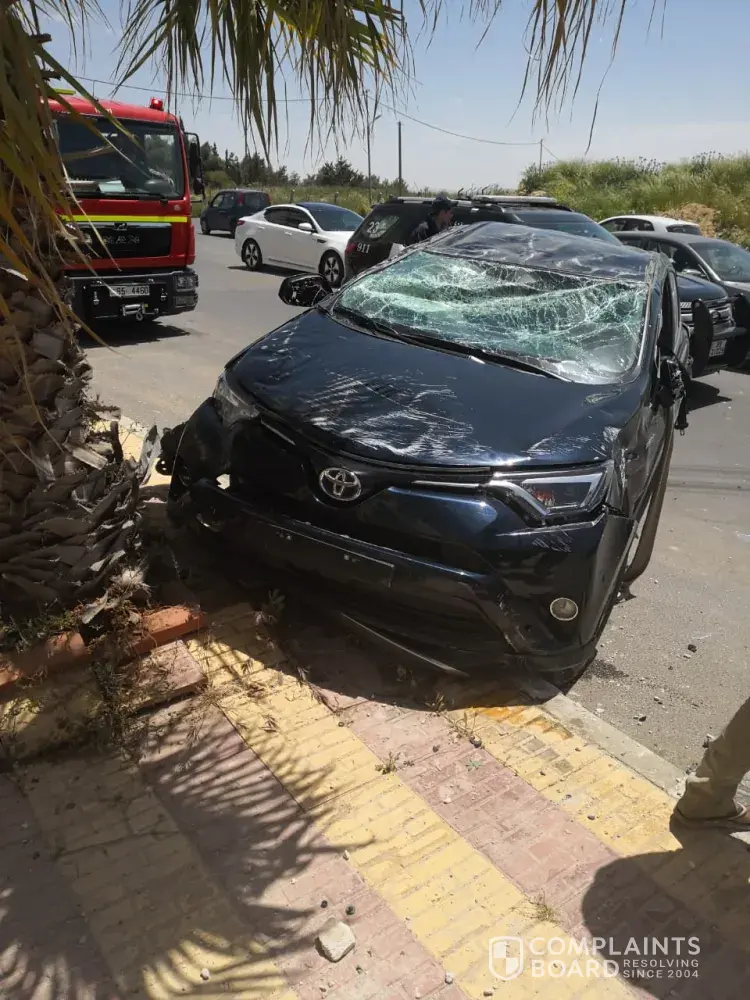 I bought a brand new car RAV4 2018. 6 months ago. And while driving in low speed road by my son he has to steer to the left to avoid accedent and due to that the car hit the kerb and it rolled over directly as it shown in the photo attached and as such heavy car that should not happen unless there is something wrong in the car.
