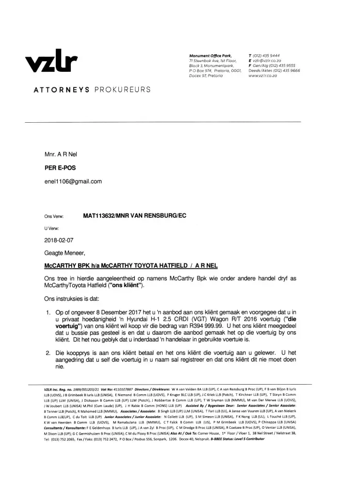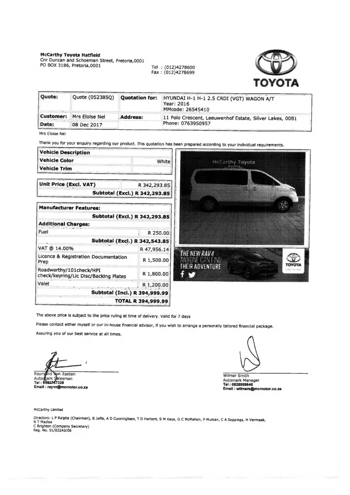 Good day. I am in a situation that I cannot get the title deed for a vehicle I purchased from a Toyota Franchise in South Africa. Bidvest McCarthy Toyota I paid in full for the vehicle.