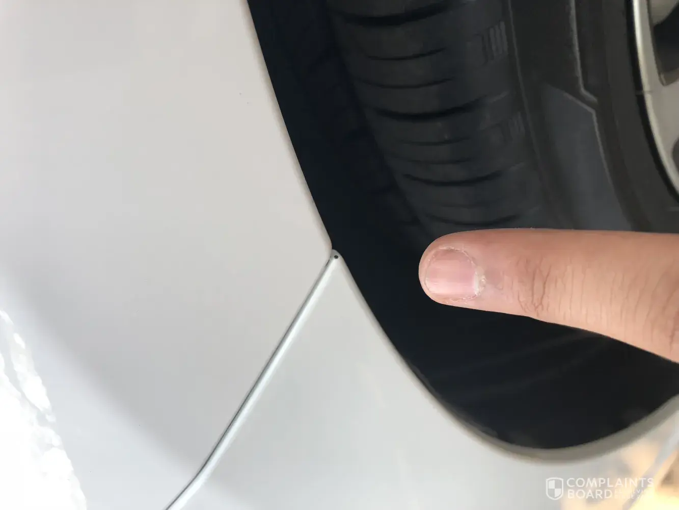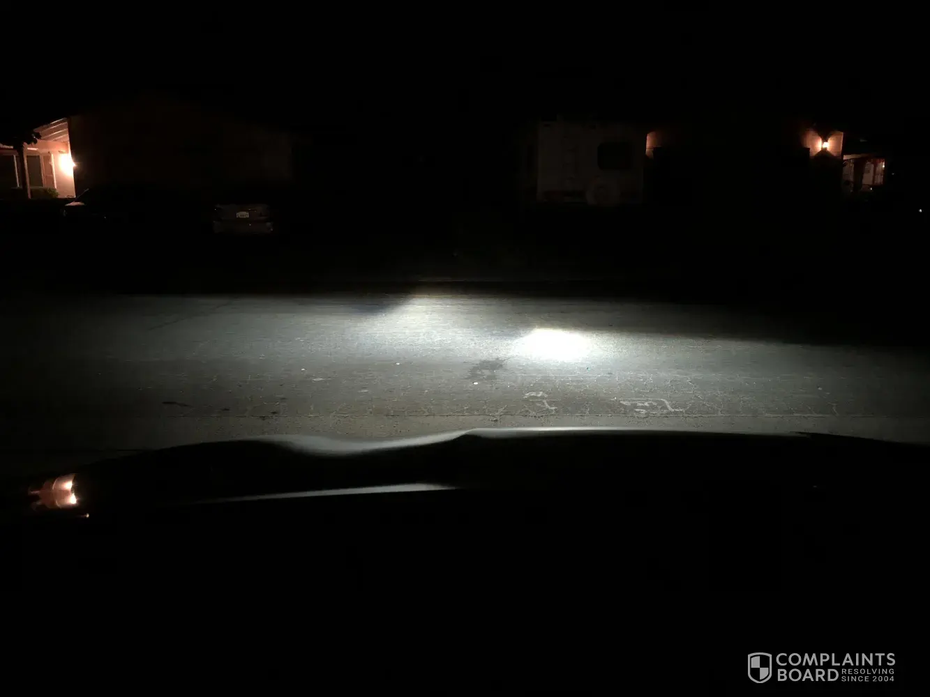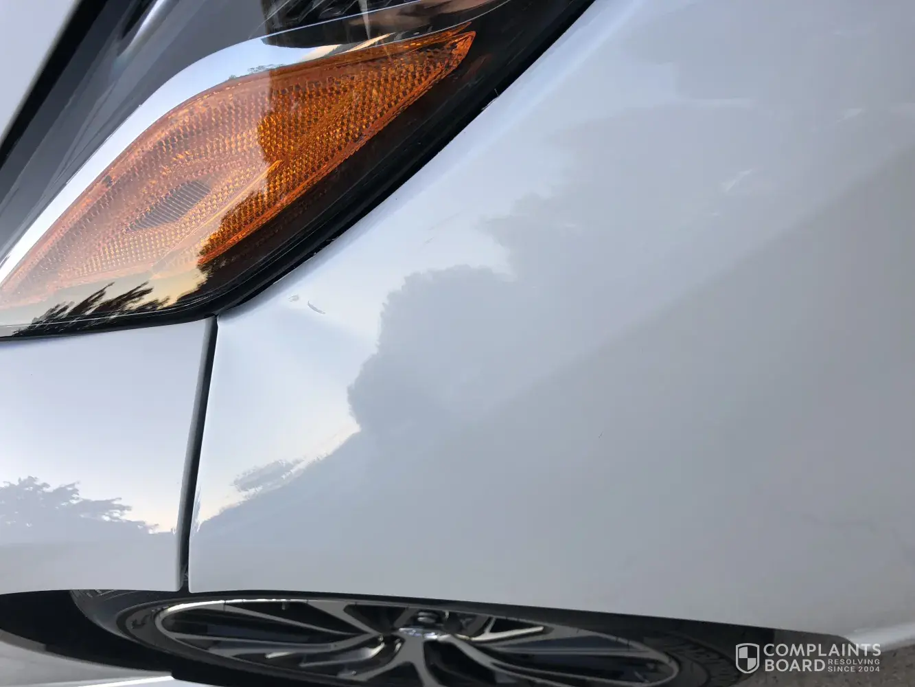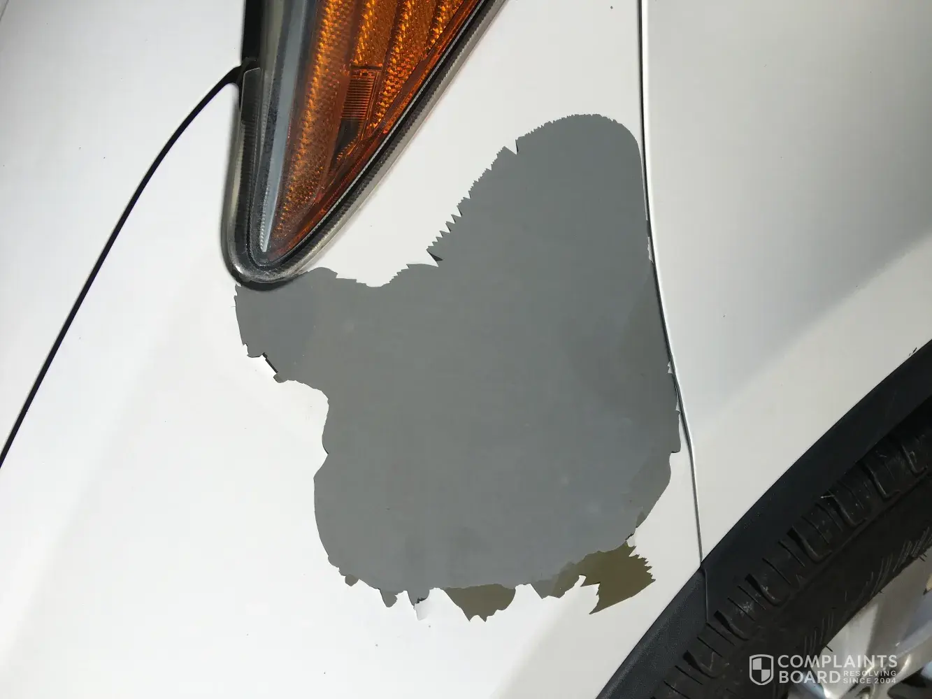 Pictures of the damage, head light beam, and missing paint from the bumper after they attempted to paint it.