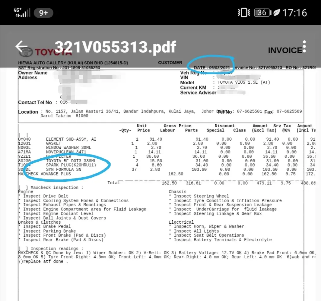 I just file a complaint regarding my car issue in Jan and the customer advisor advised to changed the spark plug and I did today in Mar I went for normal service at the same service center at Kulai and they changed my spark plug again and charged me. Not a big money but it makes me loss confidence with Toyota service center, unprofessional customer service. They should have record of all customer service history and advise accordingly and simply charged customer. There were a few other bad experience like the leaking ATF Fluid after service, air con sound etc.