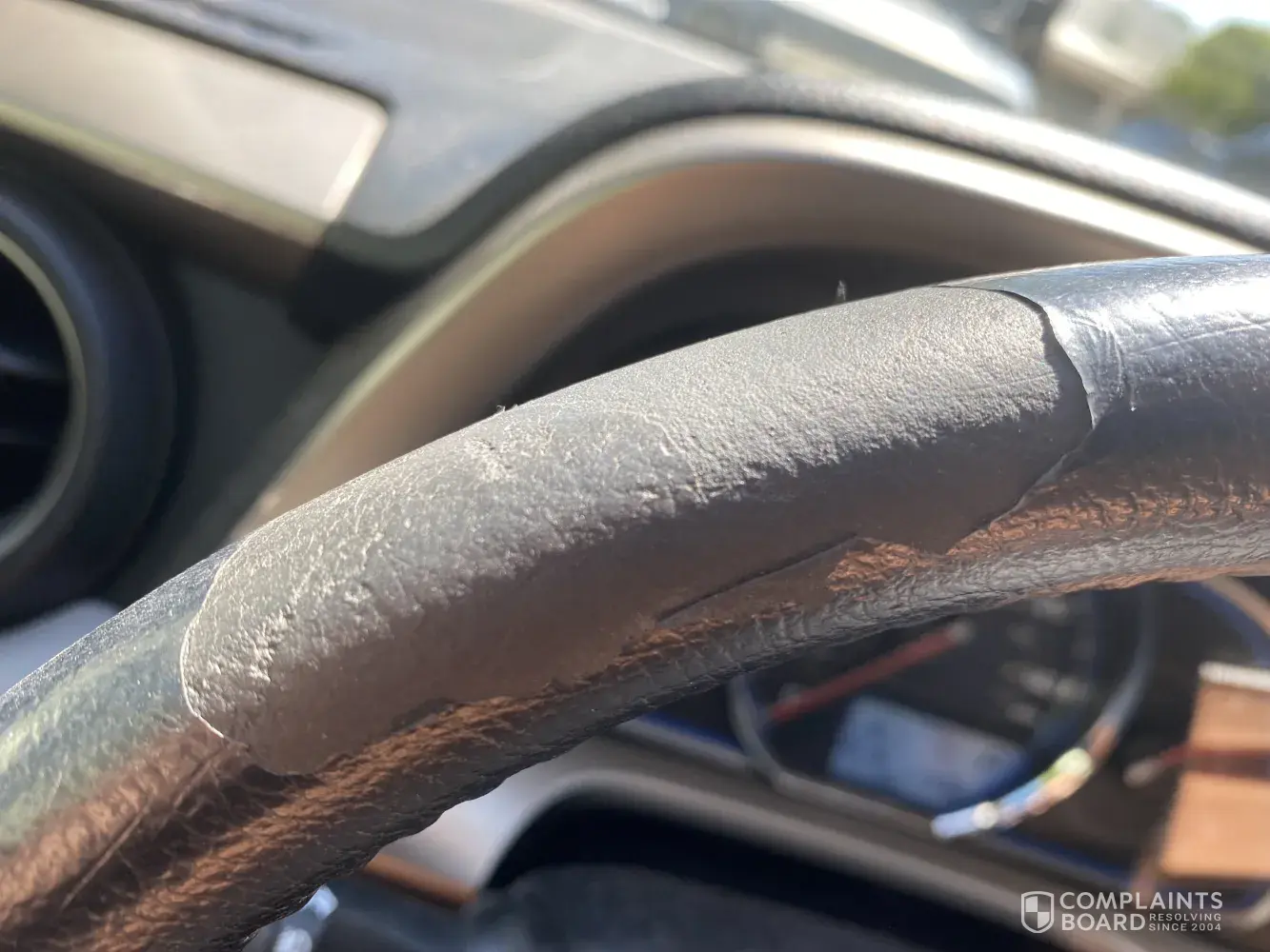 Steering wheel peel happened with brand new Toyota. I called to discuss and was told they would not pay and blamed me. Will not be buying Toyota in future and will be trading in the car. There are many similar instances of complaints about steering peeling online reviews. It's defective and should have been replaced it half paid by Toyota. It has only been a year.