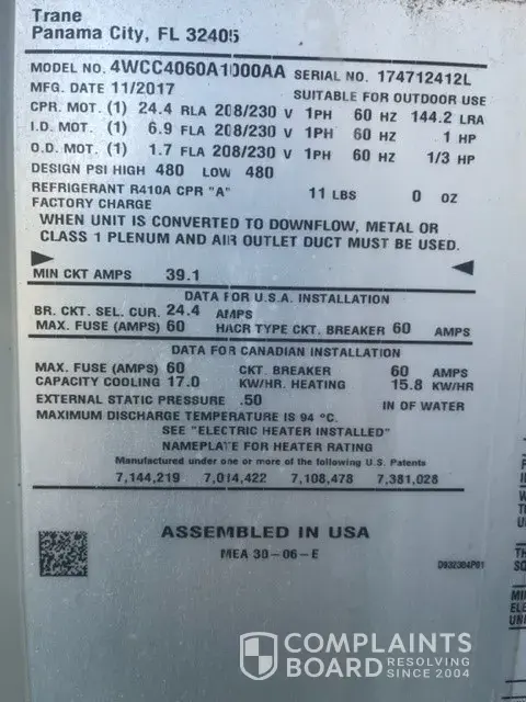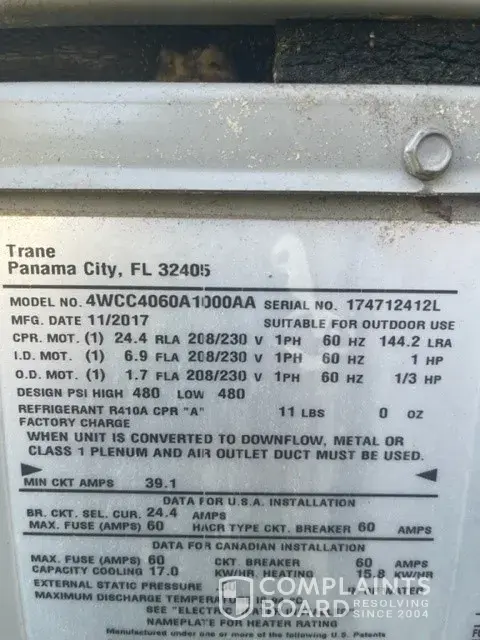 I filed a complaint with TRANE for assistance with this cost due to the defective part that has now failed TWICE. My complaint was supposedly escalated, but nothing has been done and there has been no communication.