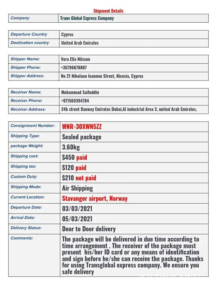 Hi sir. Today 5.3.2021. I received a call. Some one told I have your pakege from syprus. So if you have pay 780AED custom duty. (by online from LuLu) Then we will give you your pakege.