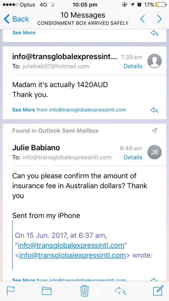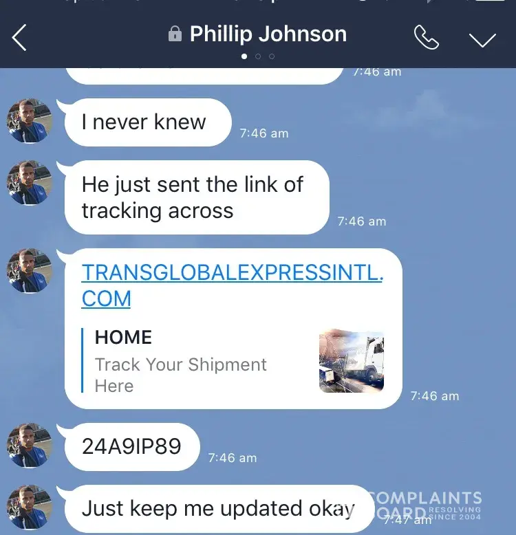 I understand they have a process in place, but I would also expect your company to protect its reputation by providing excellent customer Service in answering questions customers ask in relation to their shipments. Providing correct and accurate answers to customers prevent customers getting disgruntled and running campaigns on Google, Facebook or Twitter in order to discredit Transglobal.
