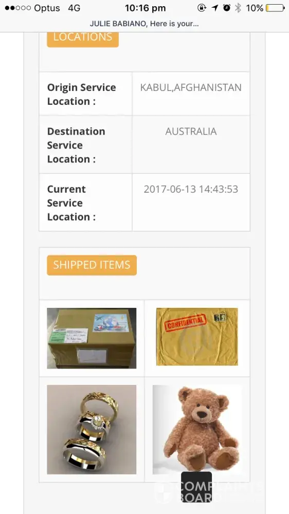 Please do not respond to philip johnson (Badoo social app) who claimed to be working in military service phillipines and pleaded for a parcel to be delivered to australia.