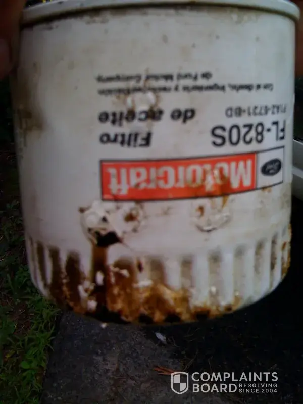 Read full complaint and 4 commentsmotorcraft oil filter - hole rusted thru , causing a leak and lost oil possible engine damage