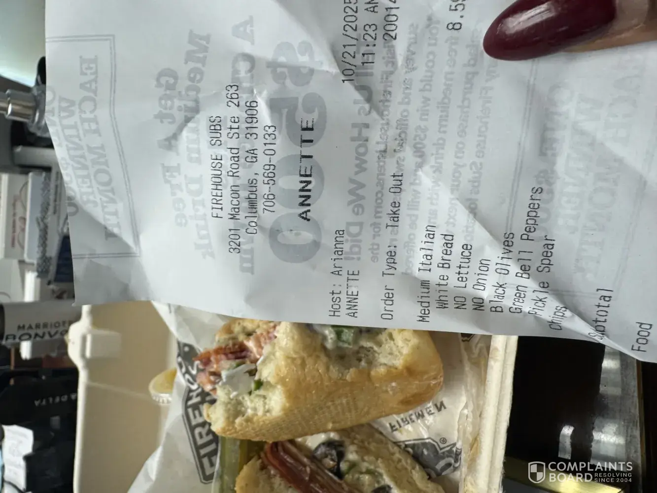 Alpha Worldwide Travel - Formal complaint – unsafe food & poor customer service at columbus, ga location