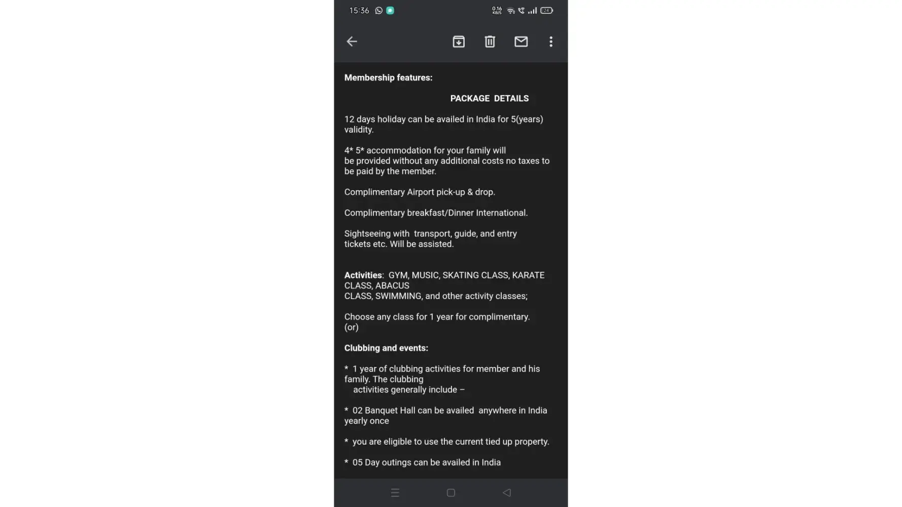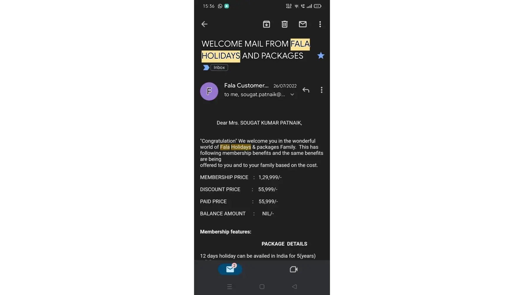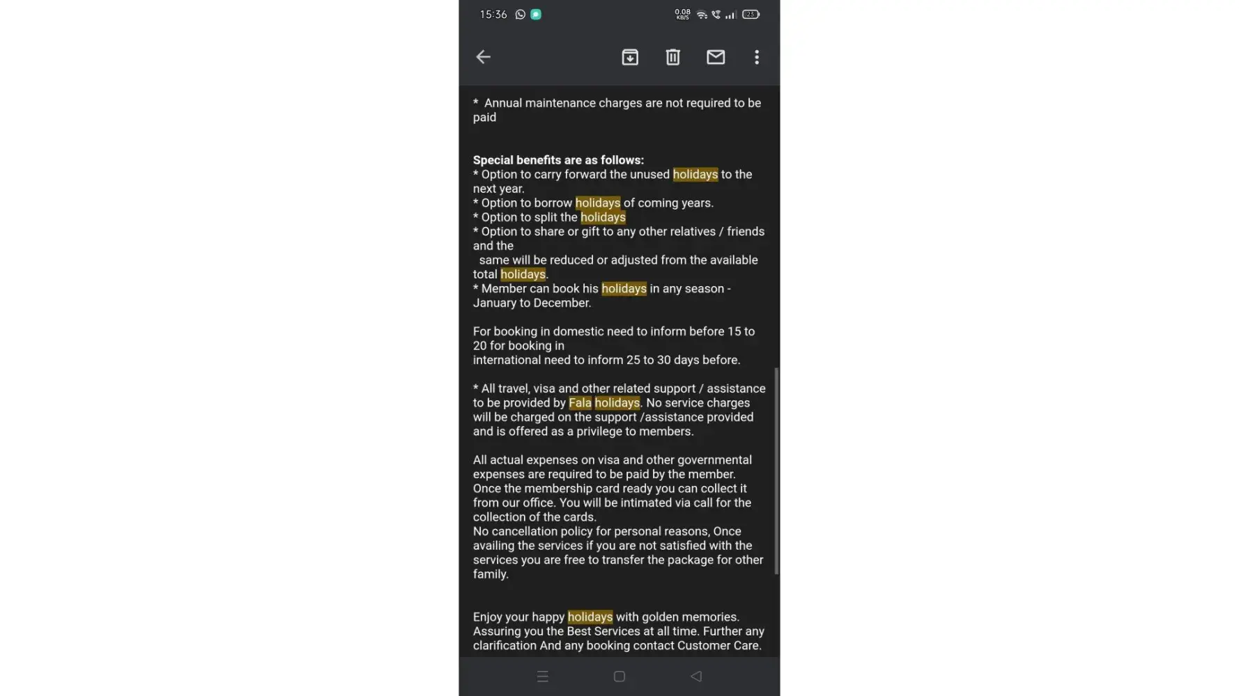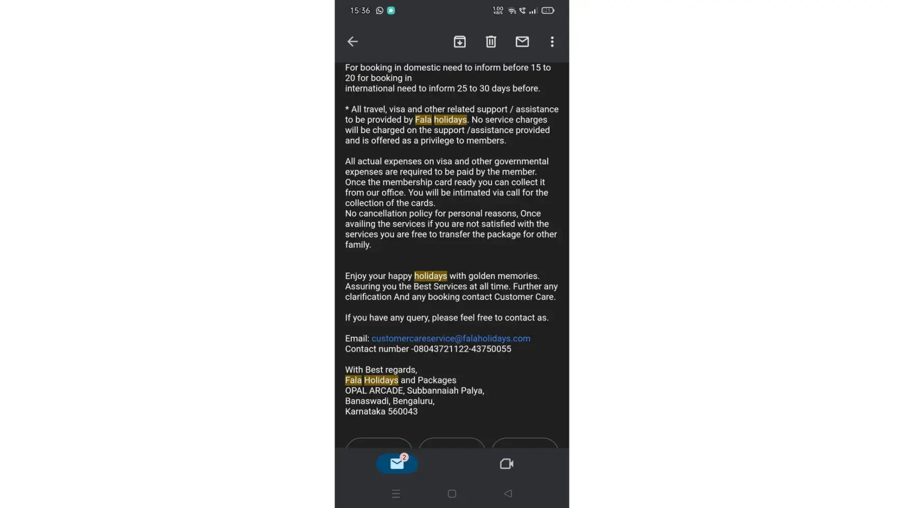 Fala Holidays.. FRAUD.. These individuals are total scammers. They questioned me about my information in the D'Mart Parking lot.. I gave it bcz i thought a parking permit required it.. The following day.. They invited me to their office and informed me that I had been chosen for a 3N/4D vacation ticket in honour of their 25 th Anniversary.. They...