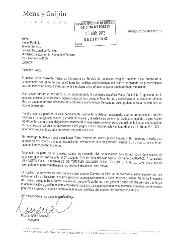 Read full complaintOn Tour Chile - JoaquÃn Tous Borrás, et AL. - Timadores, estafadores, engañadores, fraude, denuncia