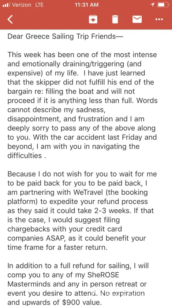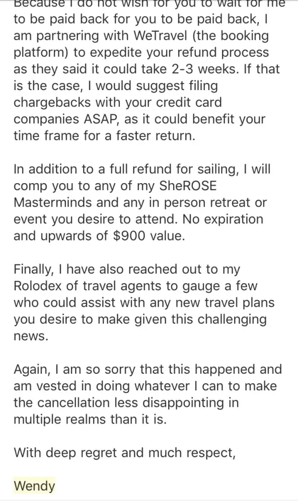 I met Wendy Via a Facebook page called Girls Love Travel. There are over 600, 000 women in that group, and it's run by a woman named Haley Woods. I have reached out to Haley to let her know my story with Wendy, as she's finding people to connect with and scam in that group. Hopefully she removes her from the group. Wendy seems put together, and honest, but...