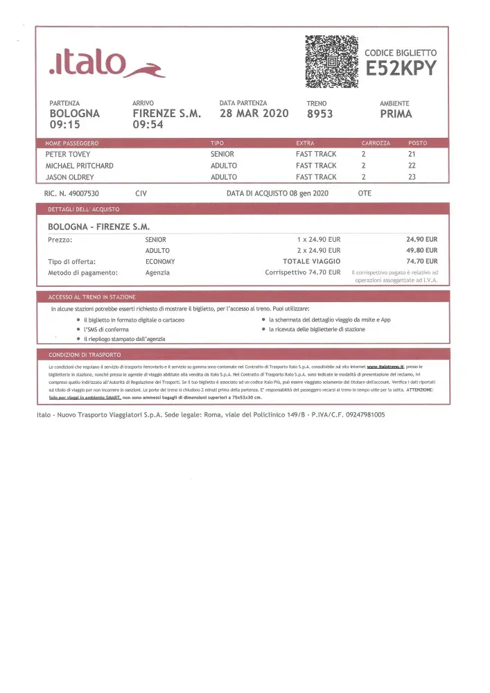 1. Trip to Bologna in March 2020 cancelled due to Covid-19 2. Applied for a refund of €74.70 in respect of 3 tickets to travel from Bologna to Florence on train 8953 (Ticket no: E52KPY) 3. Claim allocated case number 2-[protected] 4. Despite several email chasers and letters including one sent "Signed for delivery" still no reply or refund 5. Claim i...