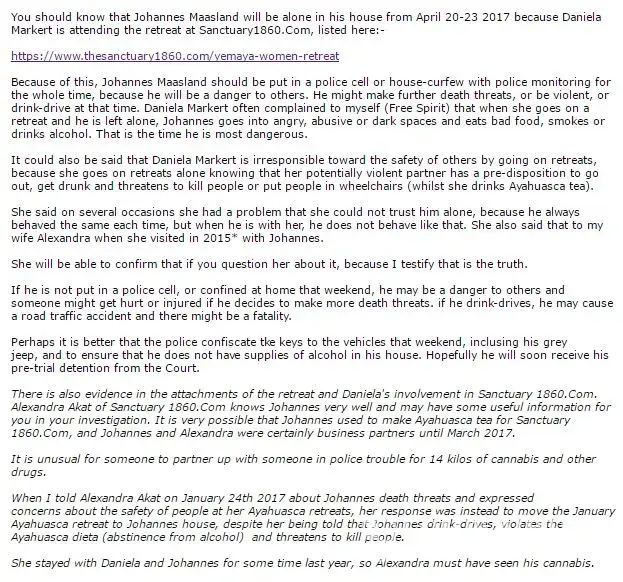 A Spiritual Master has handed down a €20, 000 damages bill to the owners of Earth Connection Portugal as well as Sanctuary 1860 Retreat after being threatened with death. The wording of the invoice cites the following justifications:- For Damages in relation to Death Threats / Threats of Violence made by Johannes Maasland (whilst drunk on his dieta) on...
