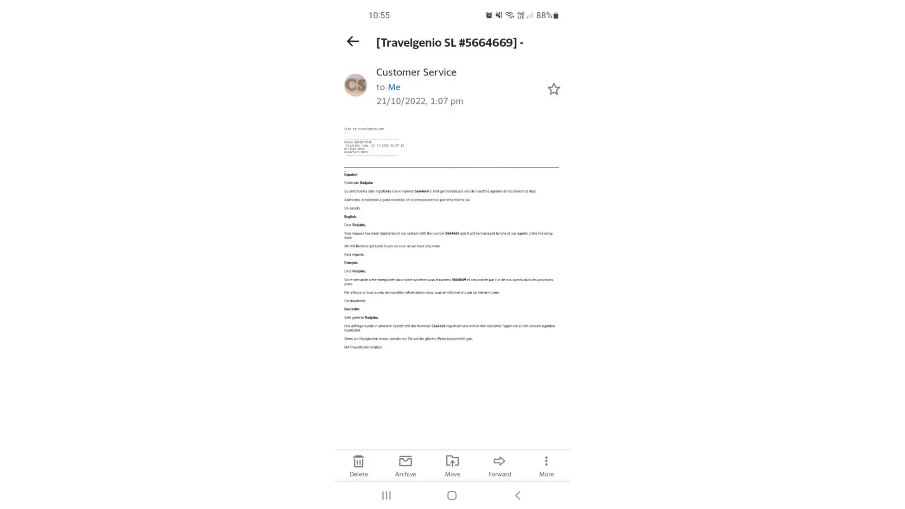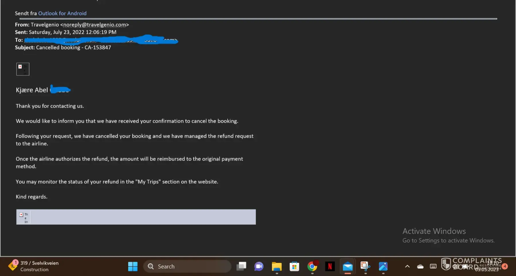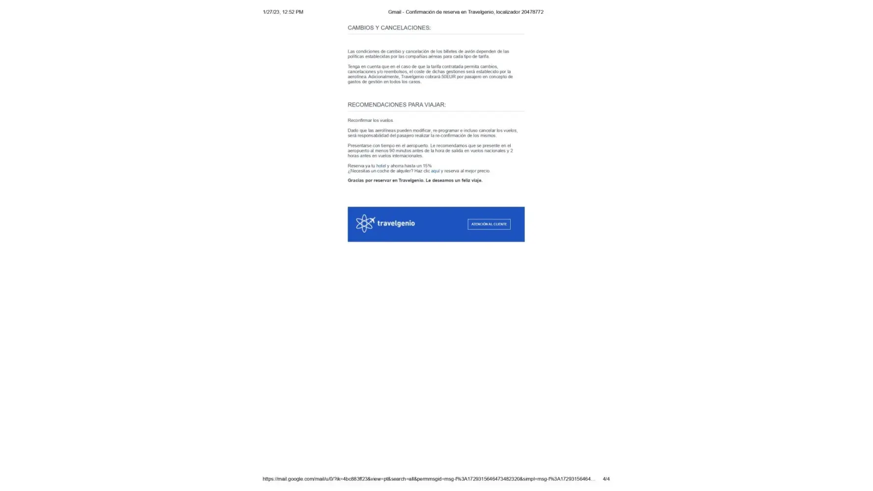 To make matters worse, Travelgenio hasn't contacted me since. They don't care about their customers, they only care about their business partnerships with platforms like Skyscanner. They reply to Skyscanner's emails, but not to mine. It's clear that they're only interested in making money and don't care about the people who use their services.