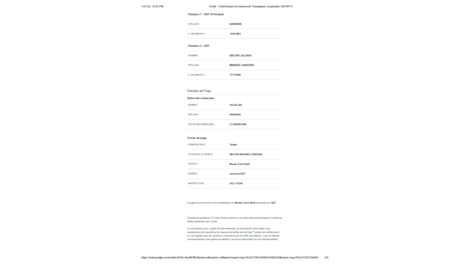My reservation number was WME7ZC, my ticket number was [protected] (name letellier epouse mancel catherine). The ticket number of my son was [protected] (name mancel hugues).