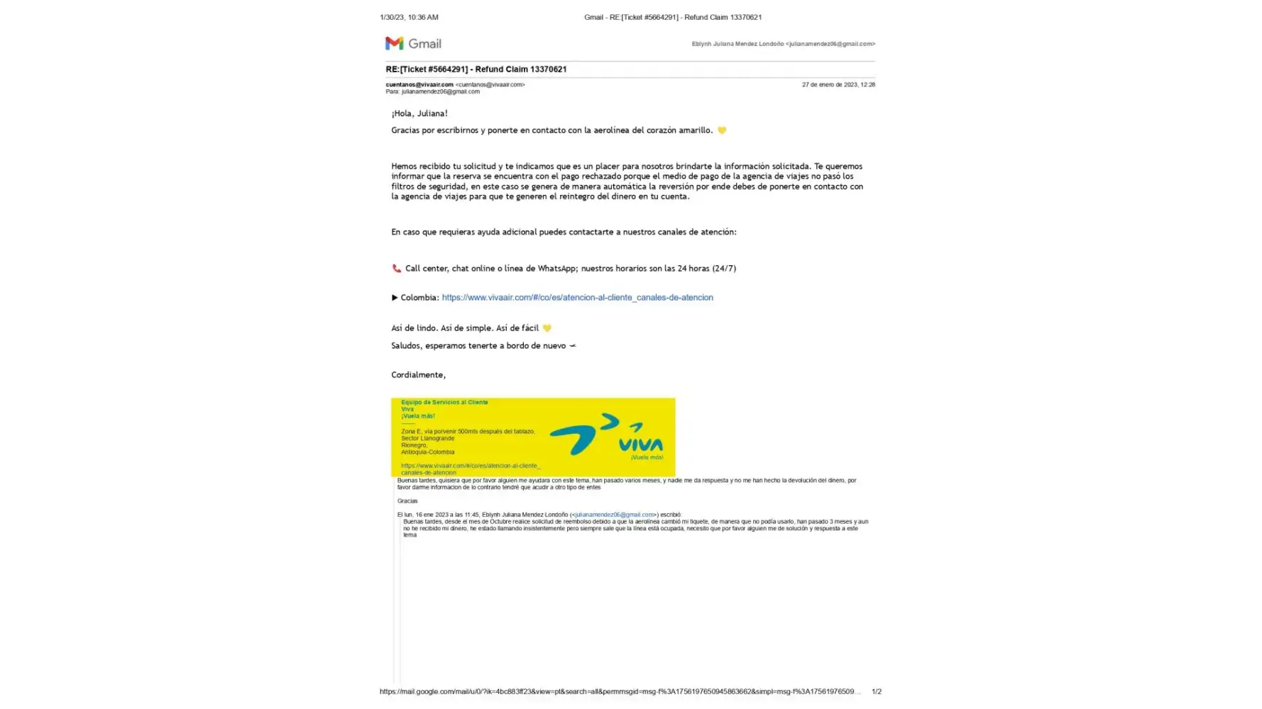 And get this: one of their replies during the year of waiting said that they would contact me with more information if the airline didn't authorize a full refund. But guess what? They never contacted me.