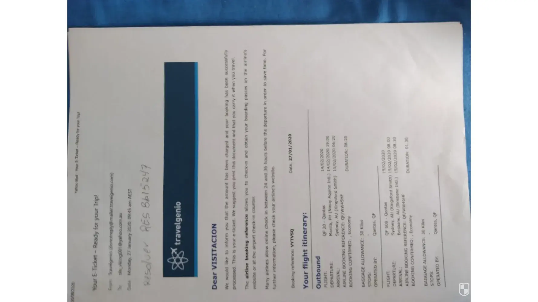 Desired outcome: Please refundAll travel documents are the whole Itinerary if required.