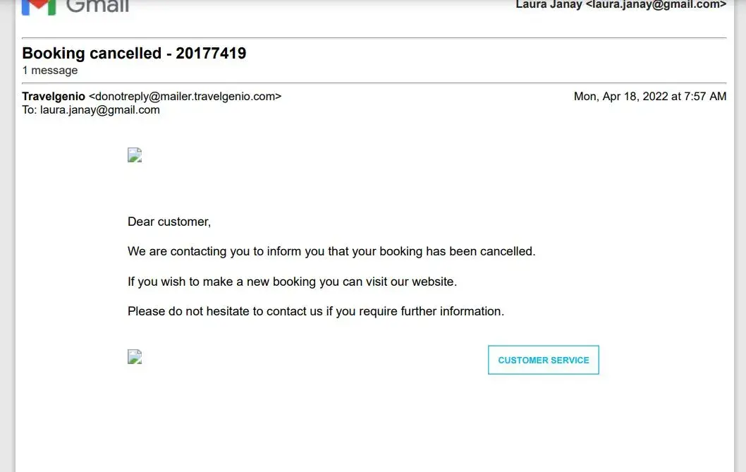 Travelgenio Reservation cancelled without being informed