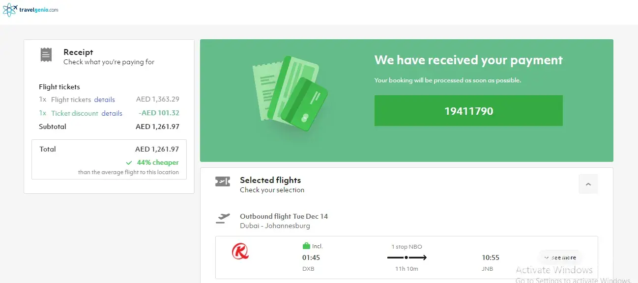 Travelgenio booking ref: Your Booking ID is [protected].