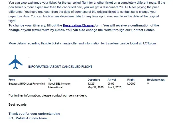 We also inform you that, by the airline's procedure on COVID-19, you are offered the following.