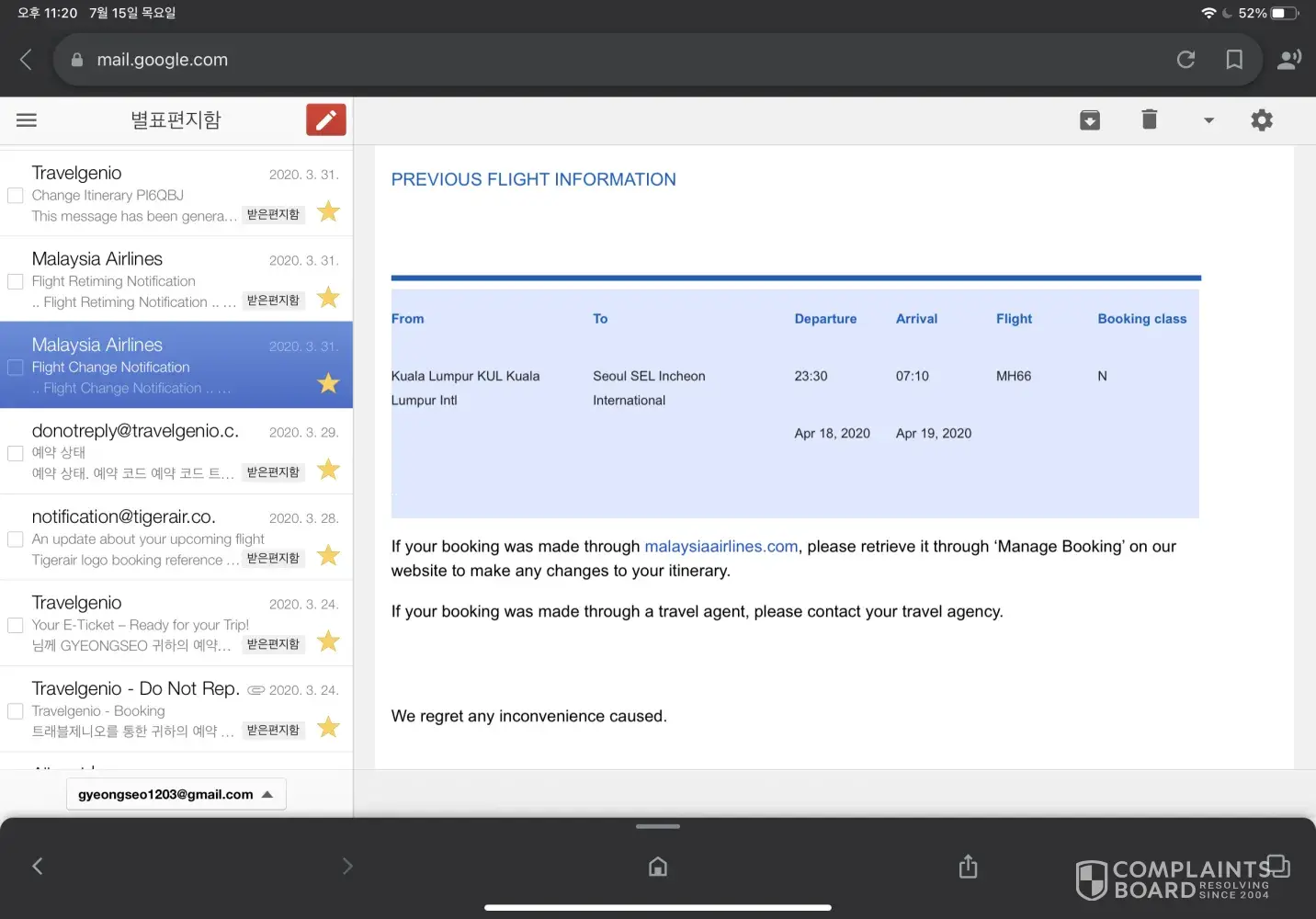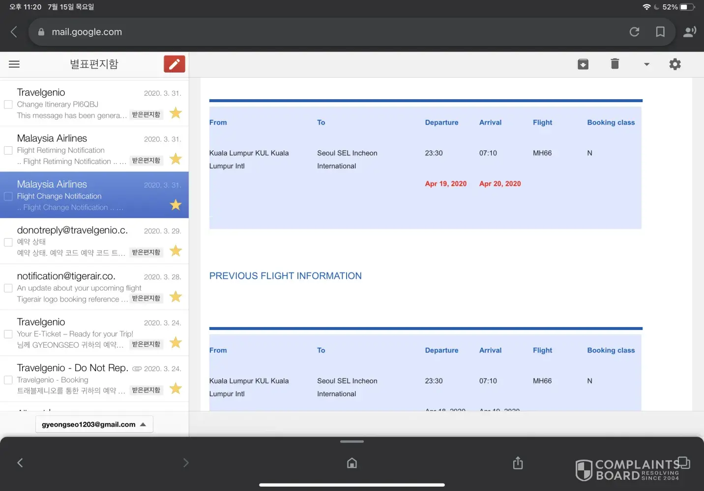 I don't know what to attach because I received so many emails due to cancellation or change.