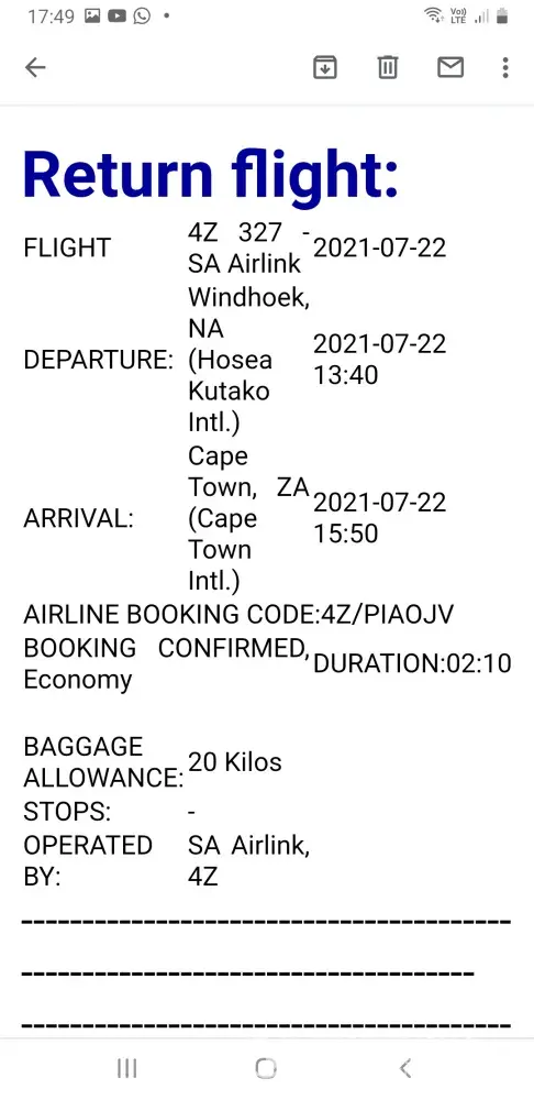 I booked a two way flight for two persons in February 2020, the return flight which was dated in 20 of may 2020 was cancelled duo to Covid-19.