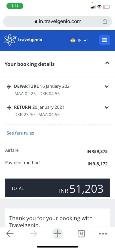 I bought 2 fly tickets from Travelgenio website in Feb 2020.