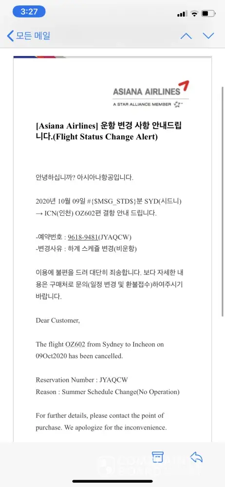 And Asiana Airlines asked me to contact the agency of purchase for Refund