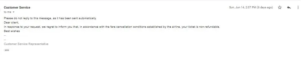 I received an e-mail from Treble Zenio regarding the cancellation of the flight ticket.