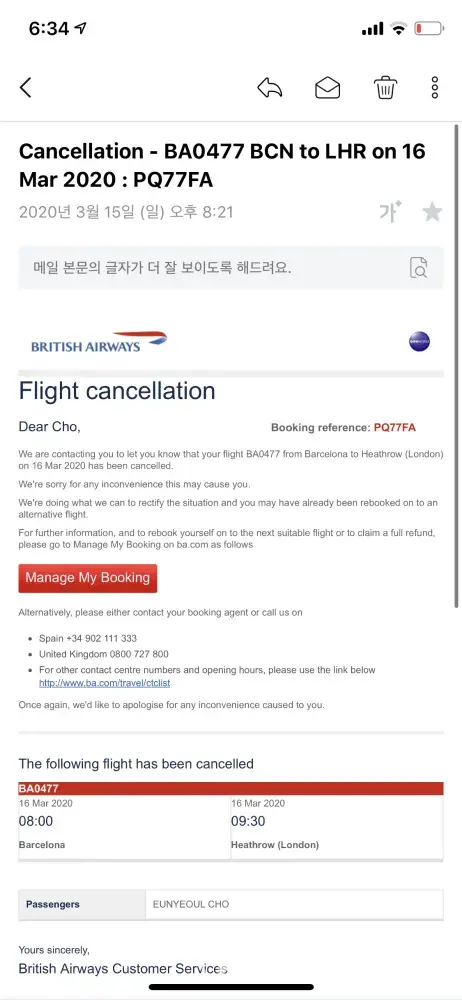 This is Han Seol. I left a review before. Thus TravelGenio asked to send mail to customer.[protected]@travelgenio.com. So I sent e-mail. However, TravelGenio does not read my mail, but only sends an automatic response mail. I want a full refund right away. I am very angry with this kind of work. I booked a flight from Brisbane to Incheon on May 10th. I was unable to use my ticket. My Booking ID is [protected]. And My booking code is WNHNNS. I want a full refund as soon as possible. Send me a refund approval email!