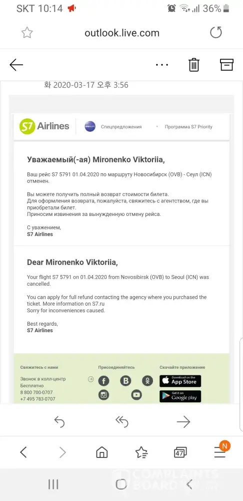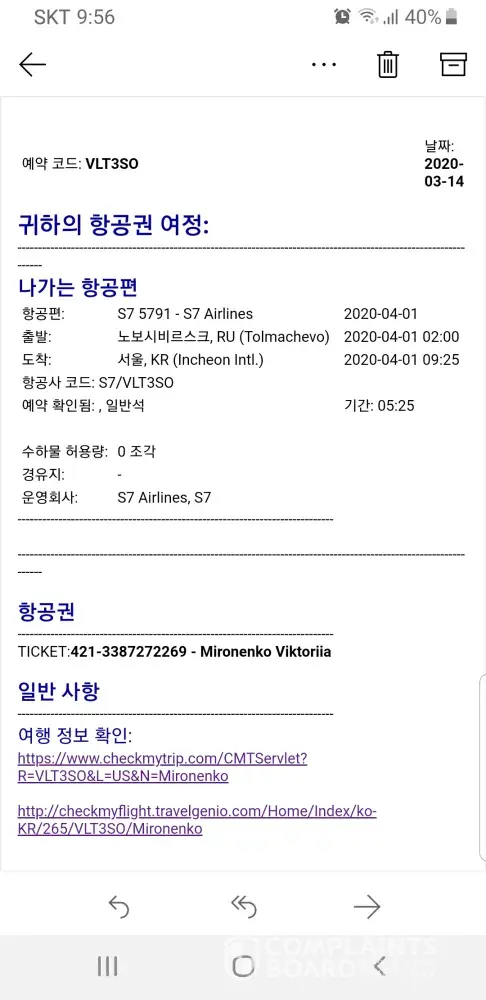 We booked a return flight from Korea to Mongolia, but the customer service center didn't answer the phone. They read the mail, but there was no reply.