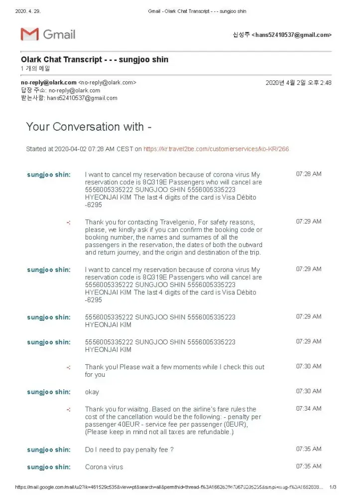 Hi, I recently booked a round trip ticket through Travelgenio but due to corona virus the airline company has cancelled my outbound trip. So to get a refund I checked with the airlines' customer service if they could proceed the refund, but as I booked my tickets through an agency, I had to contact directly the agency for the refund. That's why I finally contacted Travelgenio as they suggested, using the inquiry form on their website. But as a response, they sent me, without any words about my request, just another link in which I had to fill in exactly the same information that I had to fill in before. And I was very disappointed by their way of treating a customer's request. I just don't get the purpose of taking an effort to respond to an email with A LINK instead of a useful answer. Not only I would like to get a refund of the my outbound trip ticket but also of my inbound ticket because I'm afraid that a inbound ticket is useless without an outbound ticket. Regarding the refund method, I would like to get it through my debit card that I used to book tickets. Regards.