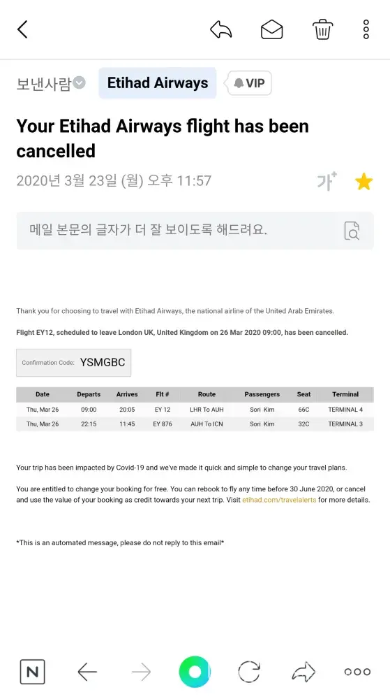 Because of the coronavirus19, Etihad Airlines unilaterally canceled my flight schedule.